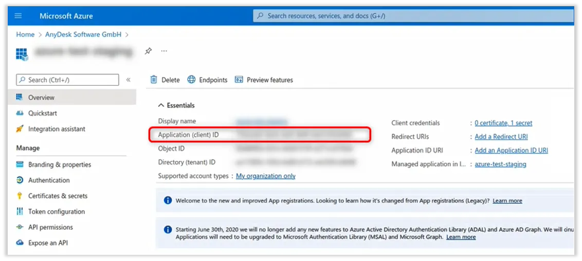 - Application (Client ID) - application ID for my.anydesk. Copy and paste the URL into the Client ID field.