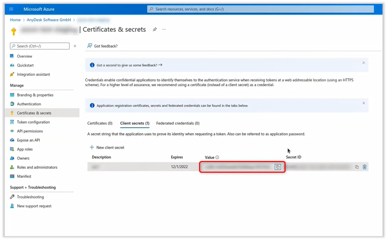 - Client Secret - copy the Client Secret value from your IDP and paste it here. It is used to register my.anydesk as an OIDC client with your provider.