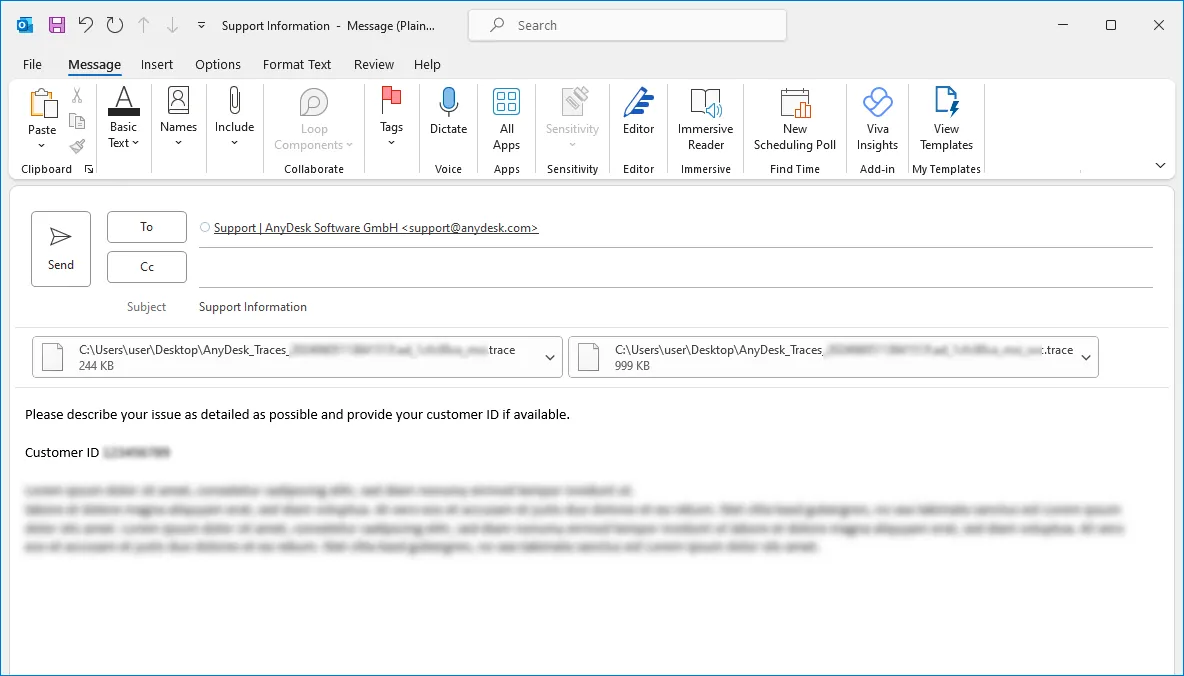 - Trace files: Attach AnyDesk trace files to your ticket. These files are invaluable for diagnosing problems, especially those that are difficult to reproduce.
