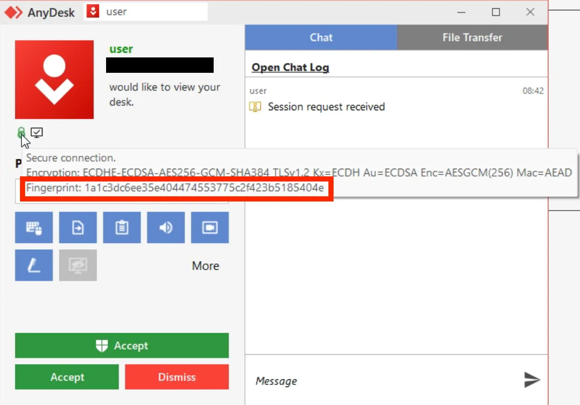 Since AnyDesk fingerprints are tied to unique client certificates, they ensure that no one can impersonate your device without access to your private key.