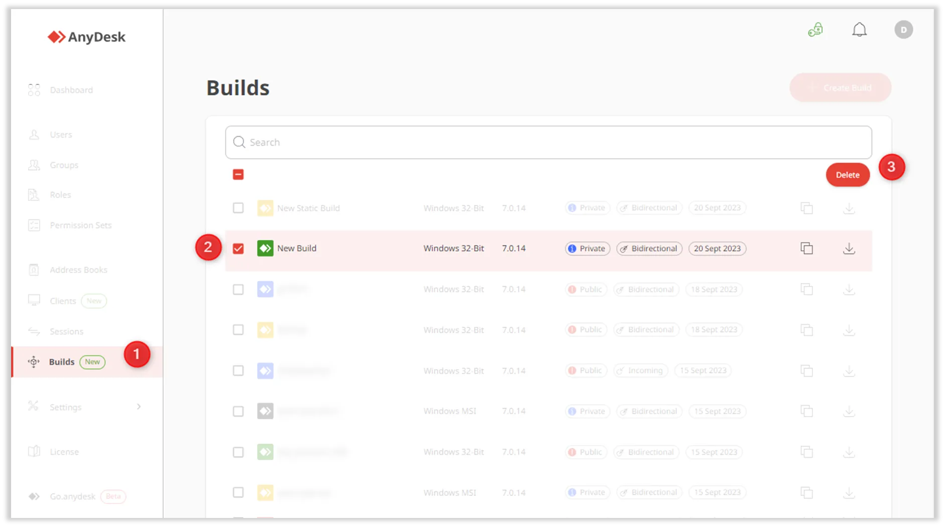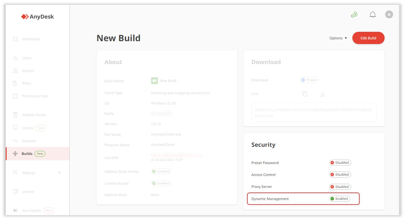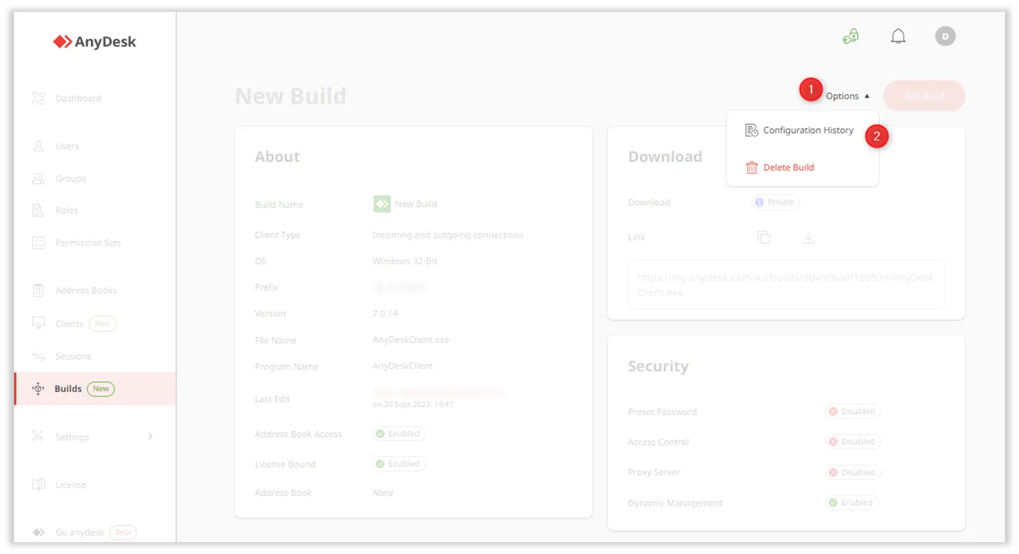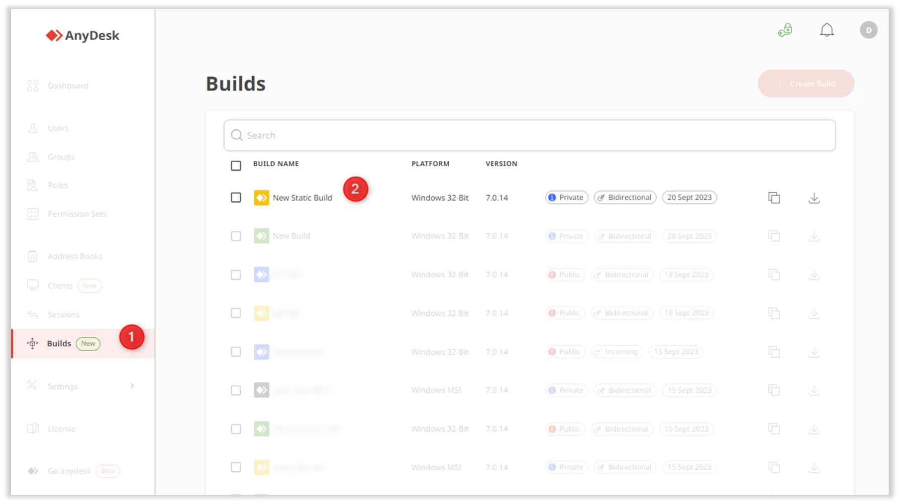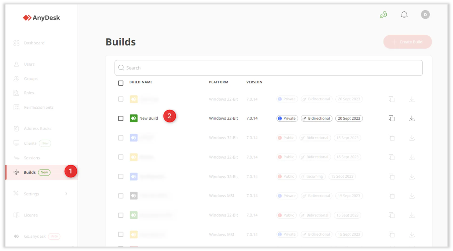 Sign in to my.anydesk II, go to Builds and select the build you want to modify.