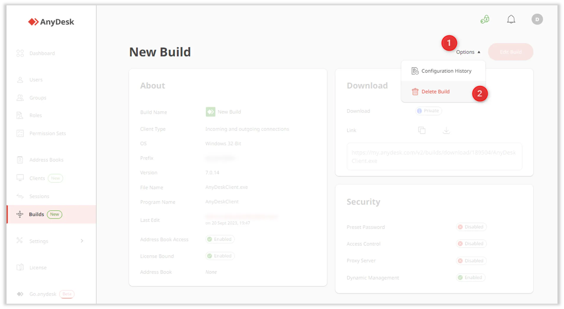 This article provides an overview of how to modify or delete your custom client builds in my.anydesk II.