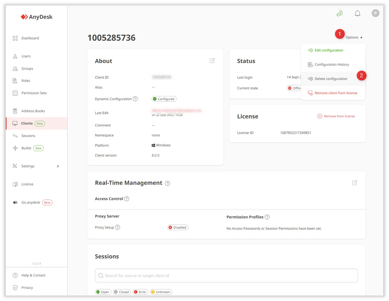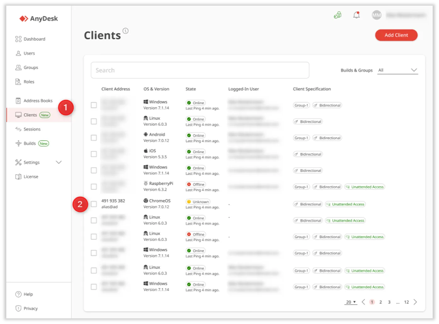 This article explains how to add AnyDesk clients to your license, modify client settings in real time, and remove clients when no longer needed.