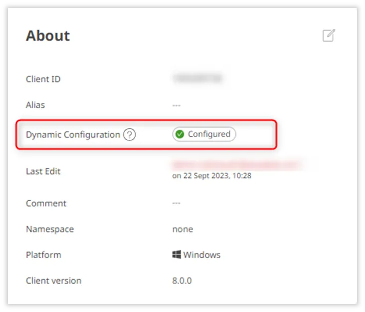 To check if the changes were successfully applied, in the About section, the Dynamic Configuration field will change from Unconfigured to Configured.
