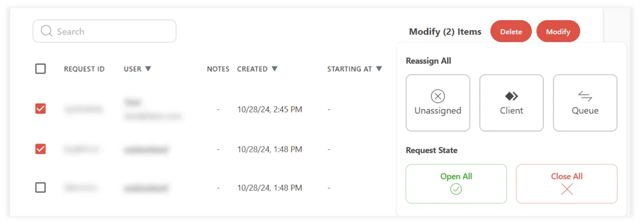 Session Requests allows support agents to create new session requests, close or reopen them, schedule session requests for a specific time, and more.